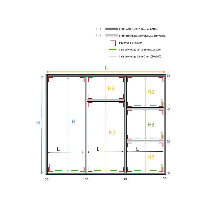 Epaisseur 2mm : pose dans les profils de séparation verrière V30.