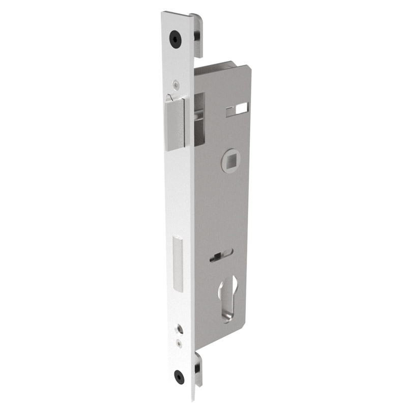 Serrure boitier à larder pêne 1/2 tour et type clé i, pour cylindre 35x35mm (à commander séparément).