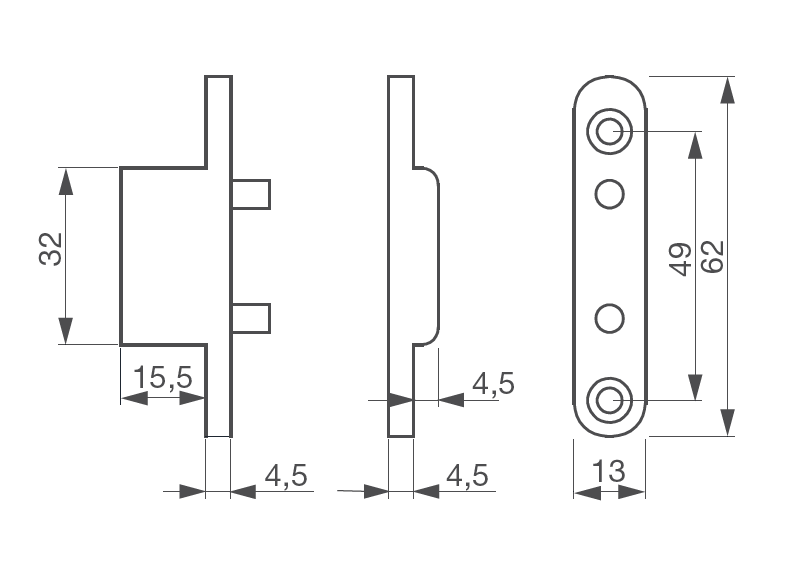 62 x 12 x 20/9 mm | ABS / Acier nickelé | 3 | 24 V AC/DC / 1 A | Bornier à vis |