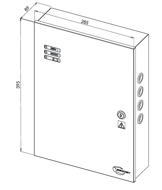 Emplacement prévu pour intégrer une batterie de 7 Ah ou 18 Ah selon la référence (une seule batterie suffit, même en 24Vcc).