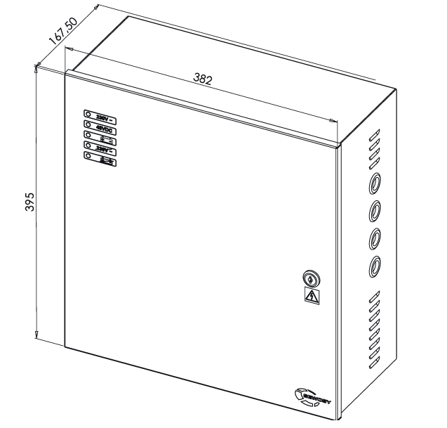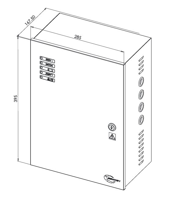 Comporte un emplacement pouvant accueillir une batterie de secours d'une capacité de 7 Ah ou 18 Ah selon les références.