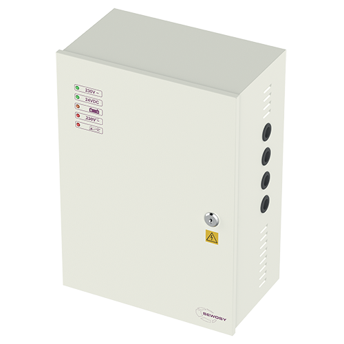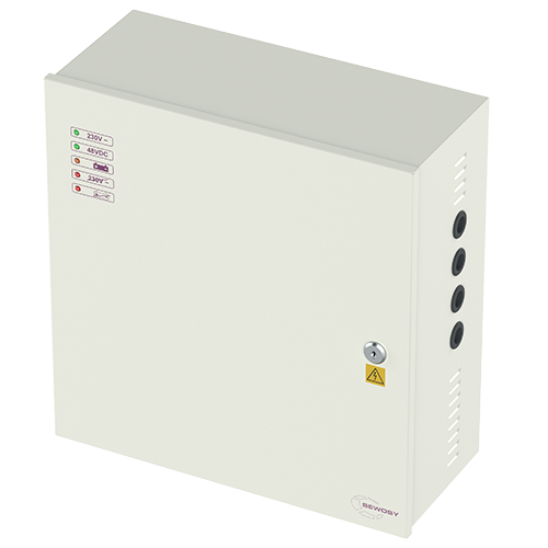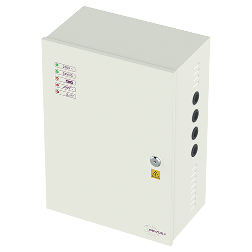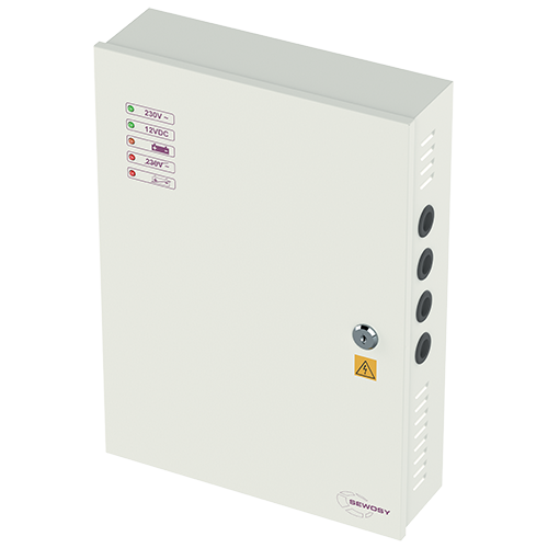 Disposent d'une protection par fusible électronique (PTC).Comporte un emplacement pouvant accueillir une batterie de secours d'une capacité de 7 Ah ou 18 Ah selon les références.Connexion de l'alimentation via un bornier à vis.Un contact d'autoprotection NO/NC permet d'envoyer un report d'information à une centrale de surveillance quand le coffret de l'alimentation est ouvert.