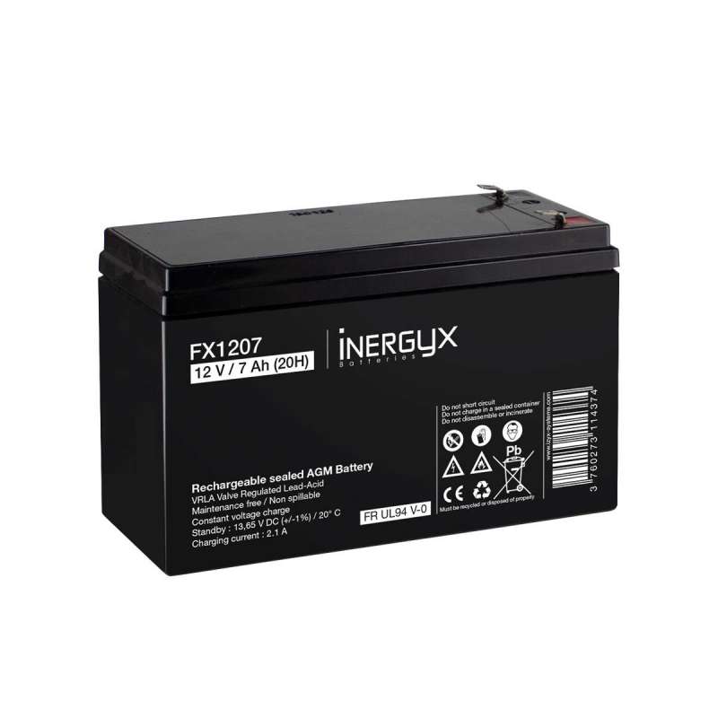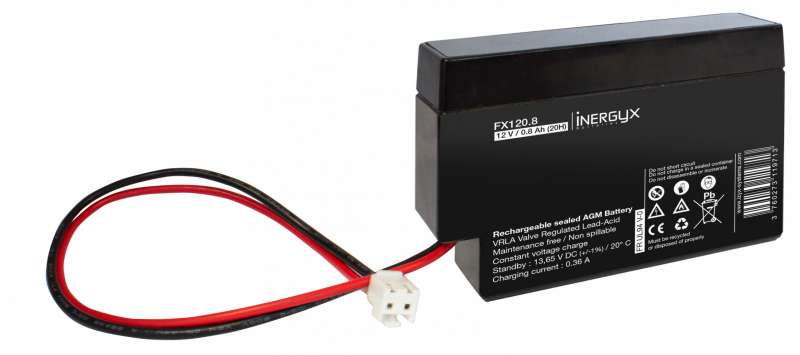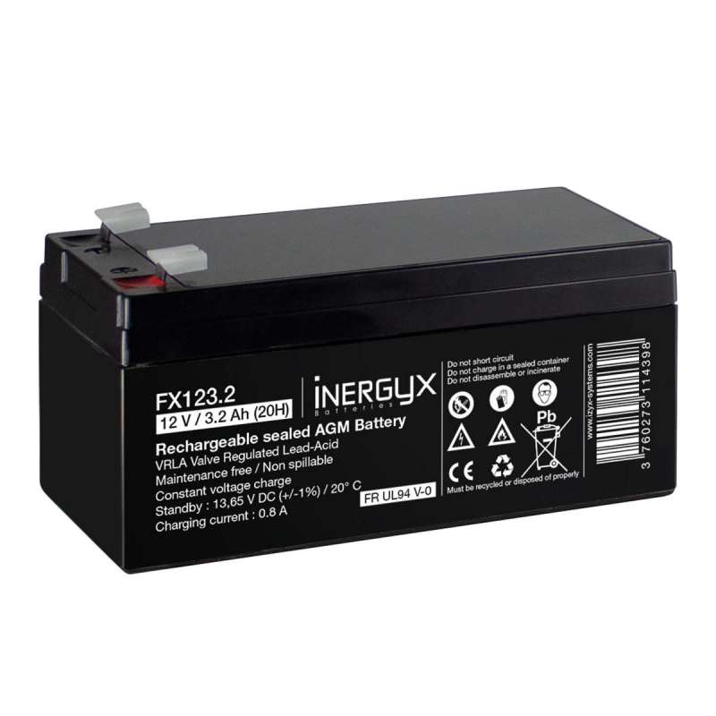 Technologie : VRLA - Valve Regulated Lead Acid / AGM - Absorbed Glass MatMatériel du boîtier : ABS FR (Flamme Retardante) / UL94 V-0Variation capacité / température : 40° C = 102 % / 25° C = 100 % / 0° C = 85 % / -15° C = 65 %Autodécharge à 25° C : +/- 3 % par moisTension de charge à 25°C en mode floating : 13,6-13,8 V DCTension de charge à 25°C en mode cyclique : 14,5-15 V DCTempérature de fonctionnement : En cha [...]