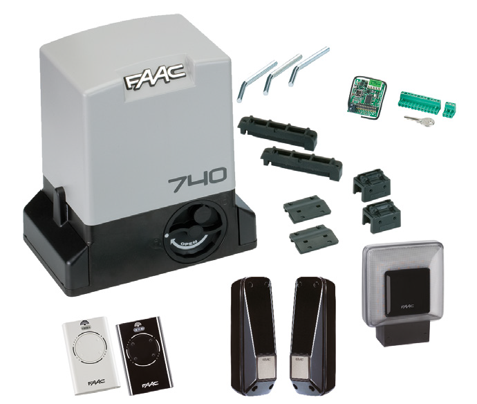 - 1 Opérateur FAAC 740 E Z16 230V avec platine électronique intégrée, encodeur et plaque de fondation