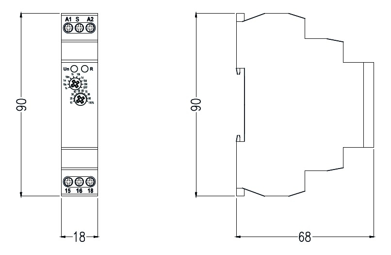 Relais temporisée pour ED100 ou ED250 en fonction désenfumage 12 - 240 VAC/DC modulaire.