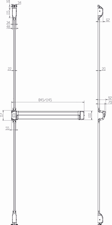 • Longueur de barre standard 835 mm ou grande longueur 1 165 mm.