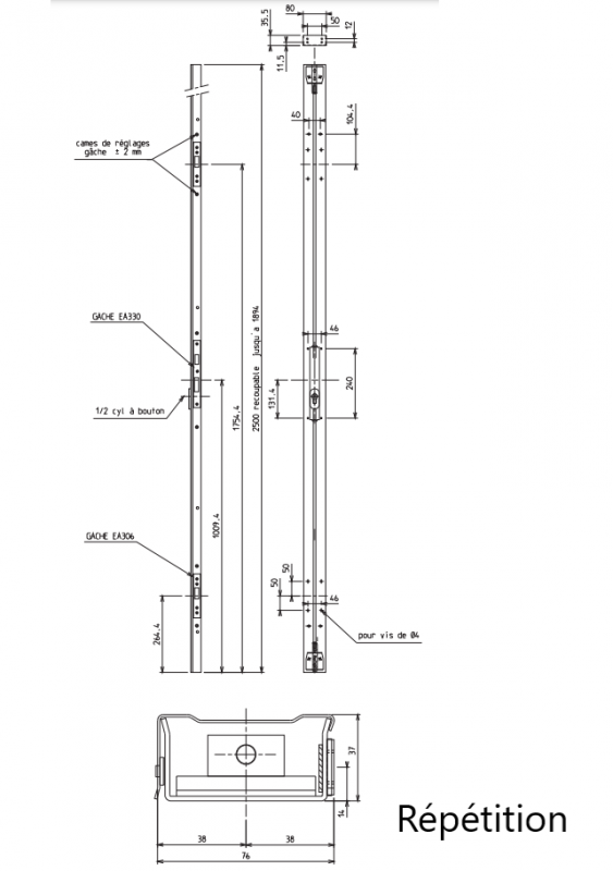 Gâches réglables, parce qu'une porte est aussi amenée à vivre, les trois gâches intégrées au bandeau gâche sont ajustables individuellement afin d'assurer un empennage sûr.