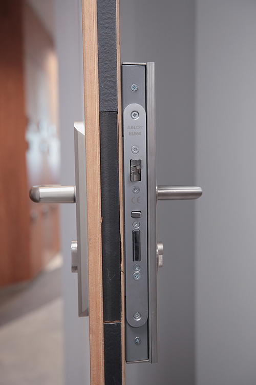 100 % paramétrable sur site la serrure ABLOY SLIMATIC peut être utilisée indifféremment : main gauche/main droite, tirant/poussant.