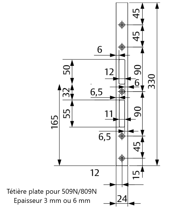 Gâche plate adaptée aux serrures de sécurité - Longueur 330 mm :