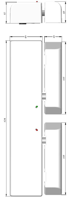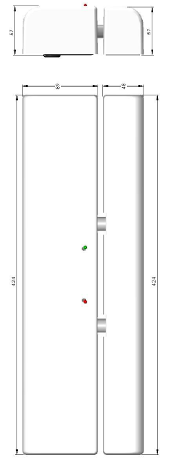 - Gâche unique en applique : 424 x 48 x 57 mm