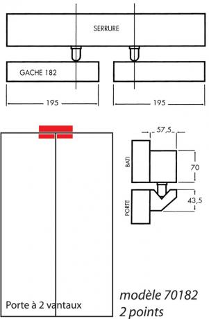 - Serrure en applique : 424 x 89 x 57 mm