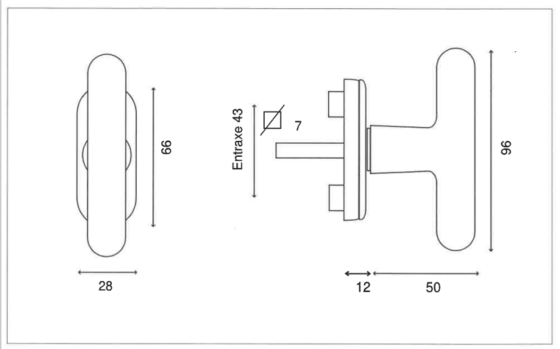 Livré avec carré de 7 mm dépassant de 35 mm et 2 vis M5 x 40 mm
