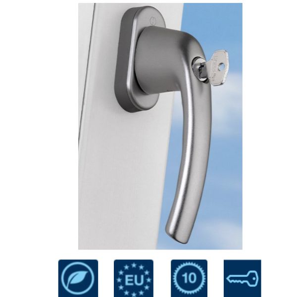 Poignée de fenêtre HOPPE en aluminium, verrouillable à clé avec SecuTBT, pour fenêtre à ouverture oscillo-battante.