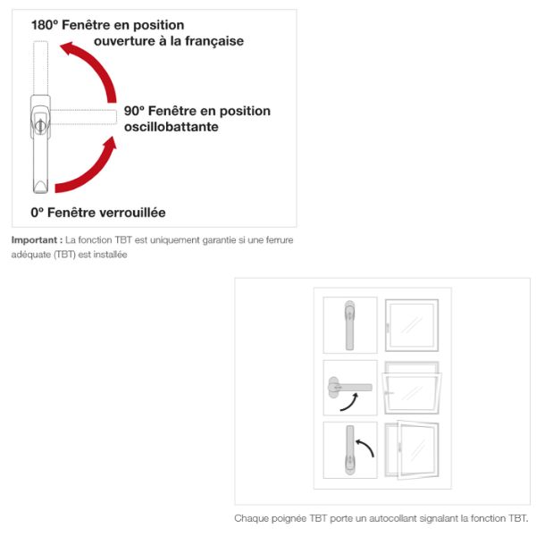 Attention : pour éviter toute erreur de manipulation, l’autocollant joint (fonctionnement SecuTBT) doit être installé sur le profil de fenêtre.