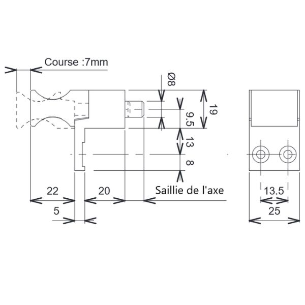 Course de l’axe : 7mm