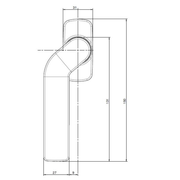 Poignée coudée manoeuvrante en aluminium et boîtier interne en zamak.