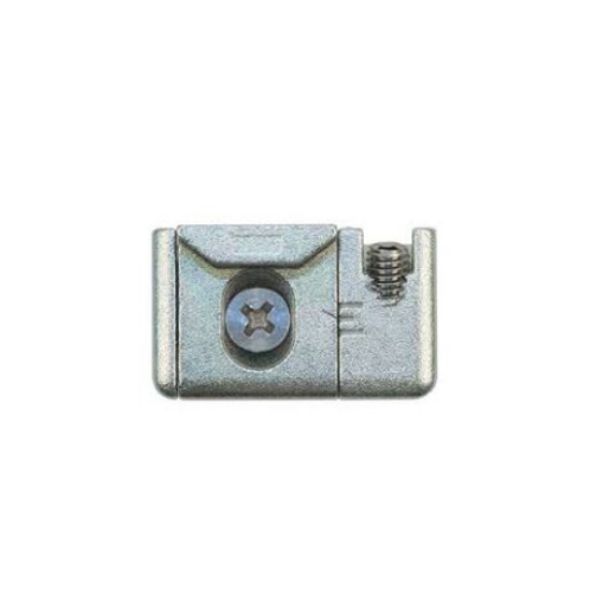 Corps en zamac zingué, vis sans tête de fixation et vis de réglage en acier inox.