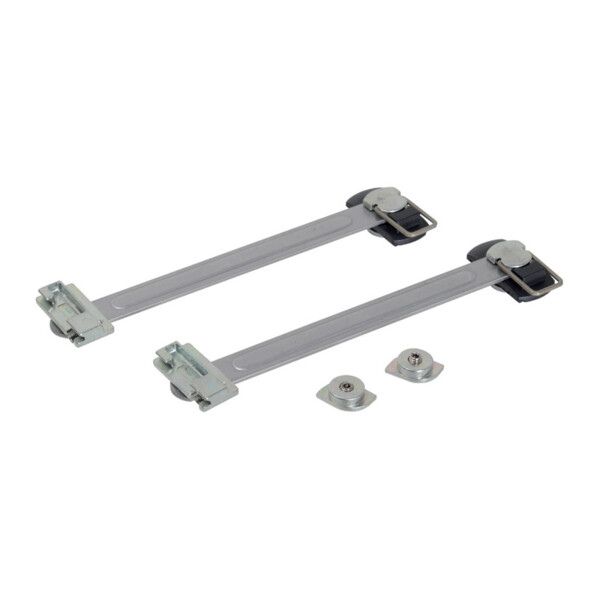 Pièce dormant fixe, coulissant et bloc d'arrêt à came en zamac zingué. Compas en acier inox AISI 304. Ressort de décrochage, plaque d'accrochement rapide à la gorge et vis sans tête en acier inox.