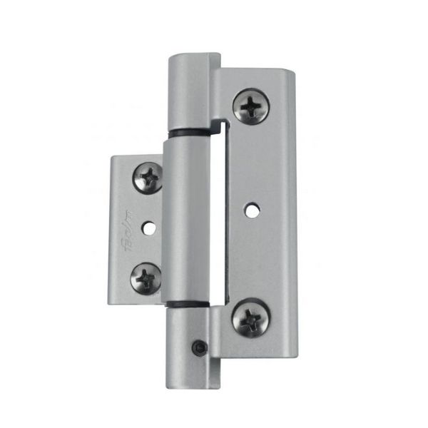 Paumelle GRIP à trois lames pour profiles à Gorge Éuropéenne - preparée pour goupille de sûretéCorps de paumelle en aluminium extrudé anodisé ou laqué. Axe de rotation en acier inox. Douilles de rotation en nylon autolubrifié. Vis et plaques de fixation en acier inox, pré-montées. Predisposition pour la goupille de sûreté pour éviter le glissement vertical. Aspect externe identique à les [...]