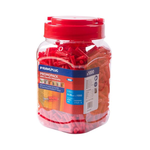 Cheville universelle pour la fixation dans tous types de matériaux supports pleins et creux recommandé pour la mise en '9cuvre dans les supports inconnus et les trous déjà utilisés cheville de petite taille permet la mise en '9cuvre dans des parois minces géométrie unique pour garantir une expansion et tenue maximales ailettes anti-rotation dans le trou collerette empêche le glissement de la cheville dans des trous surdimensionnés applications : étagères, plafonds suspendus, installation électriques, chemins de câbles, ballons d'eau chaude, radiateurs, éclairage, équipement sanitaire.