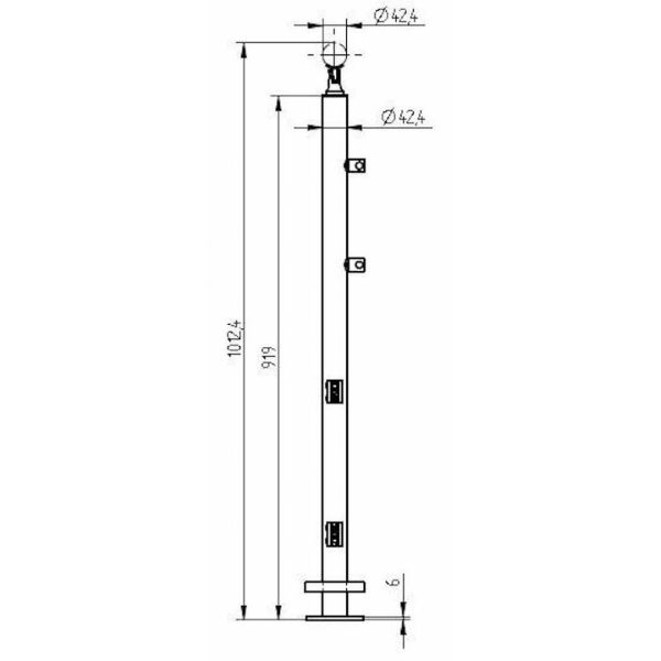 Poteau d'extrêmité verre + lisses -