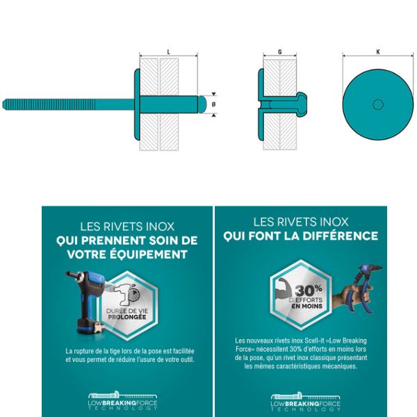 RIVET STANDARD - INOX A2/INOX A2 - TÊTE EXTRA LARGE