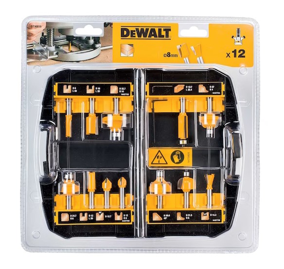 Ensemble contenant des lames circulaires, à rainures en V, à queue d'aronde, en anse, en dos d'âne, à chanfrein, droites, de détourage et tournées.