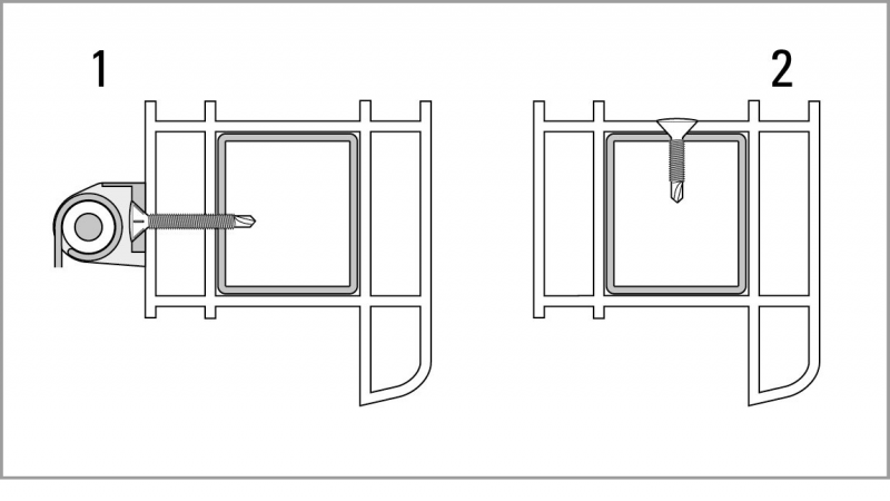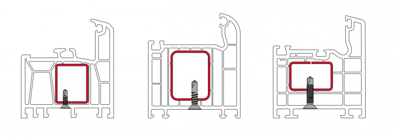 Fixation de renfort en acier ou en aluminium jusqu'à 4mm d'épaisseur et de ferrure dans les profils PVC à parois épaisses et/ou multiples.