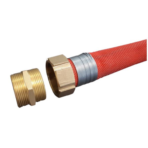 Composition du kit : 10m de Flat 15 rouge Ø 38, 1 mamelon 1''1/2 laiton 1 raccord cranté 38 mm x fem tourn 1''1/2 laiton 1 montage par ligature DN40.