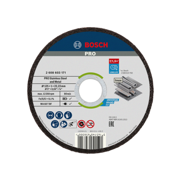 200 Disque PRO Métal Inox 125x1x22.23mm Plat