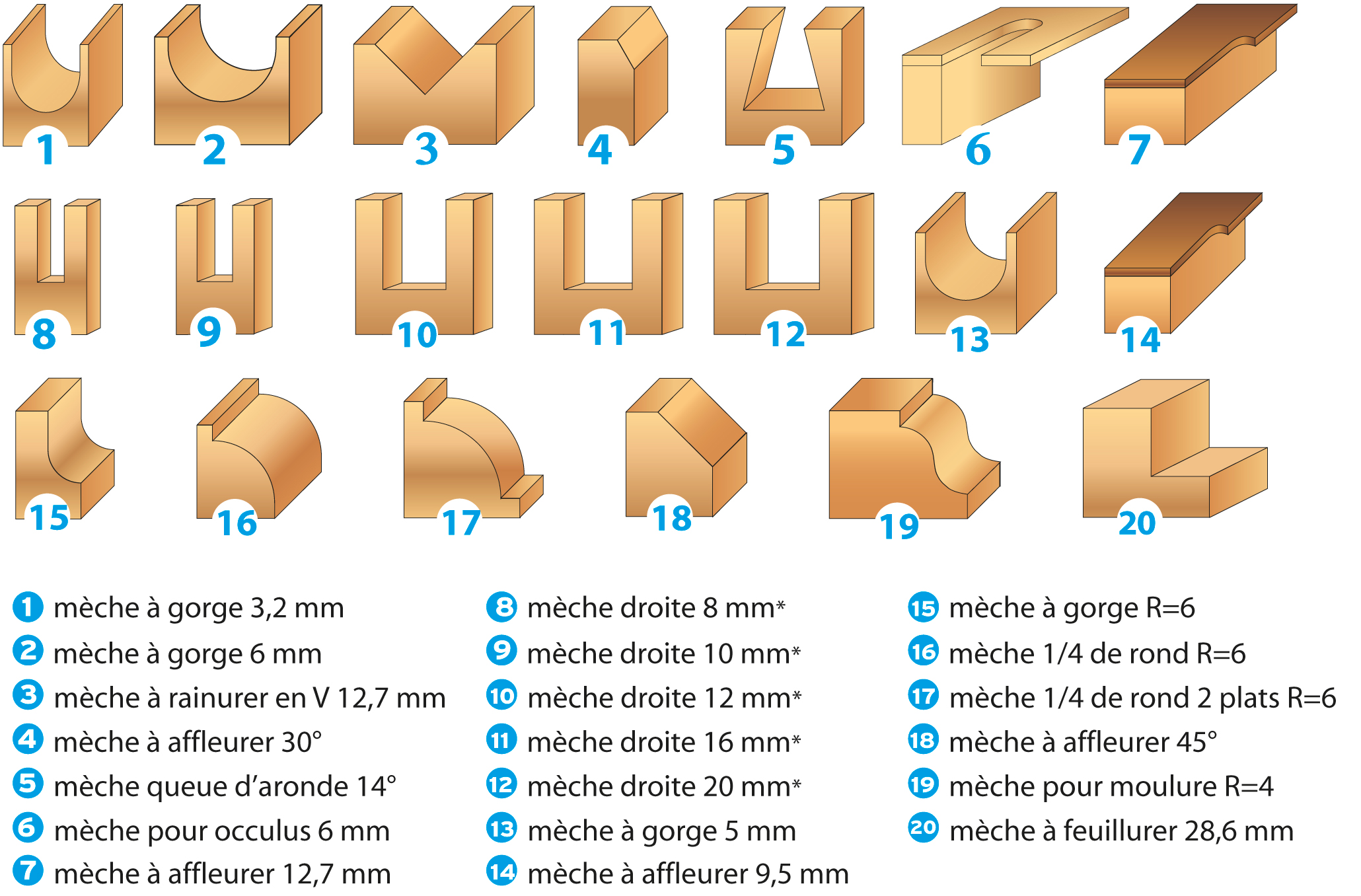 MECHE DE DEFONCEUSE ASSORTIES QUEUE 8 MM (COFFRET DE 20)