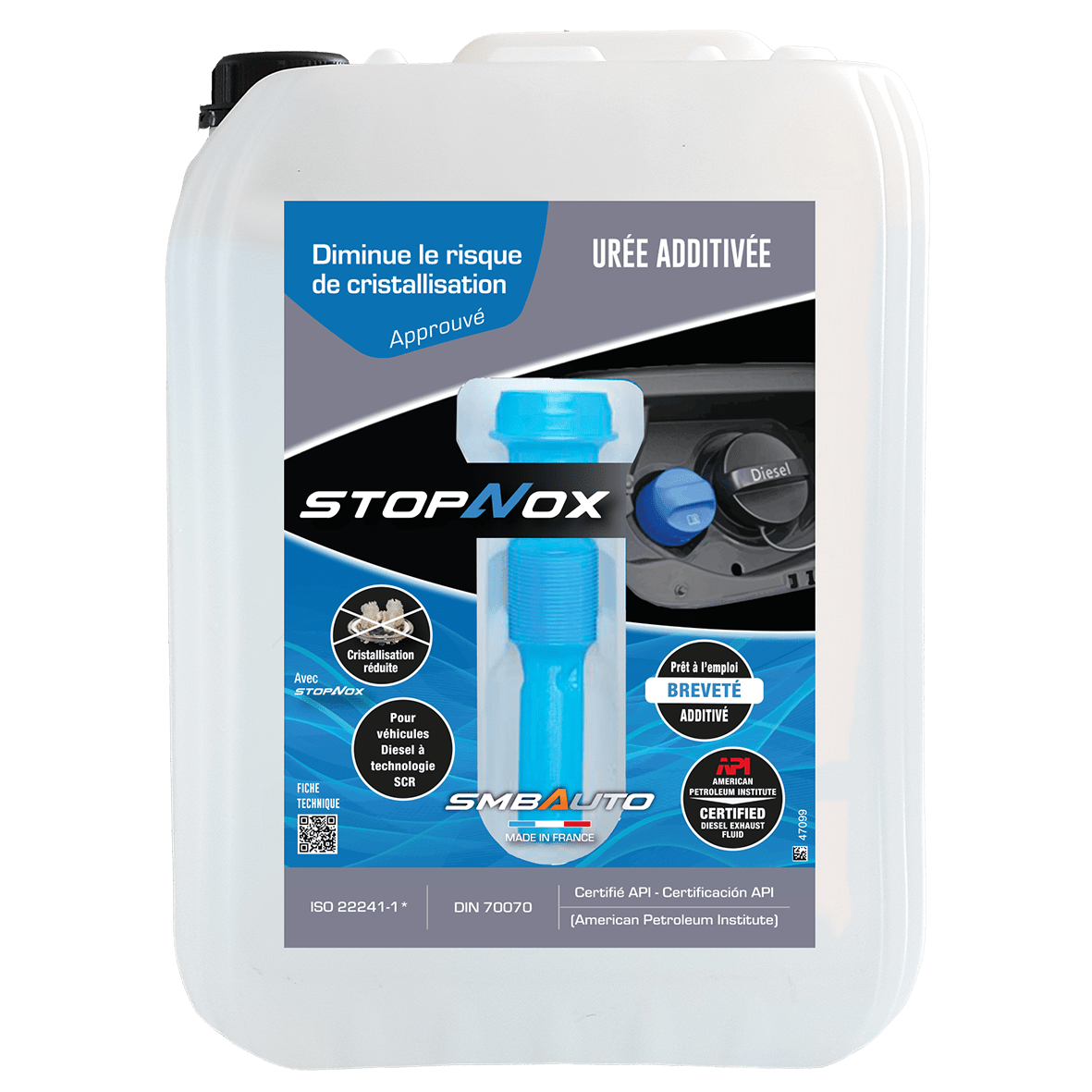 STOPNOX est un agent de réduction des oxydes d azote additivé qui permet d optimiser la pulvérisation d urée et de protéger le système SCR contre la formation de cristaux qui peut s observer dans certaines conditions (basses températures, faibles charges, arrêts fréquents) ÉVITE LA CRISTALLISATION : Préserve le système SCR et le moteur. Réduit les pannes et les immobilisations de votre flotte. Contribue à la maîtrise de votre consommation de carburant. Prêt à l emploi. Permet de respecter les niveaux d émissions des normes antipollution. APPLICATION BREVETÉE par TotalEnergies et testée en collaboration avec des motoristes et constructeurs Avec flexible.