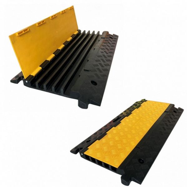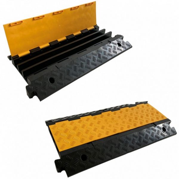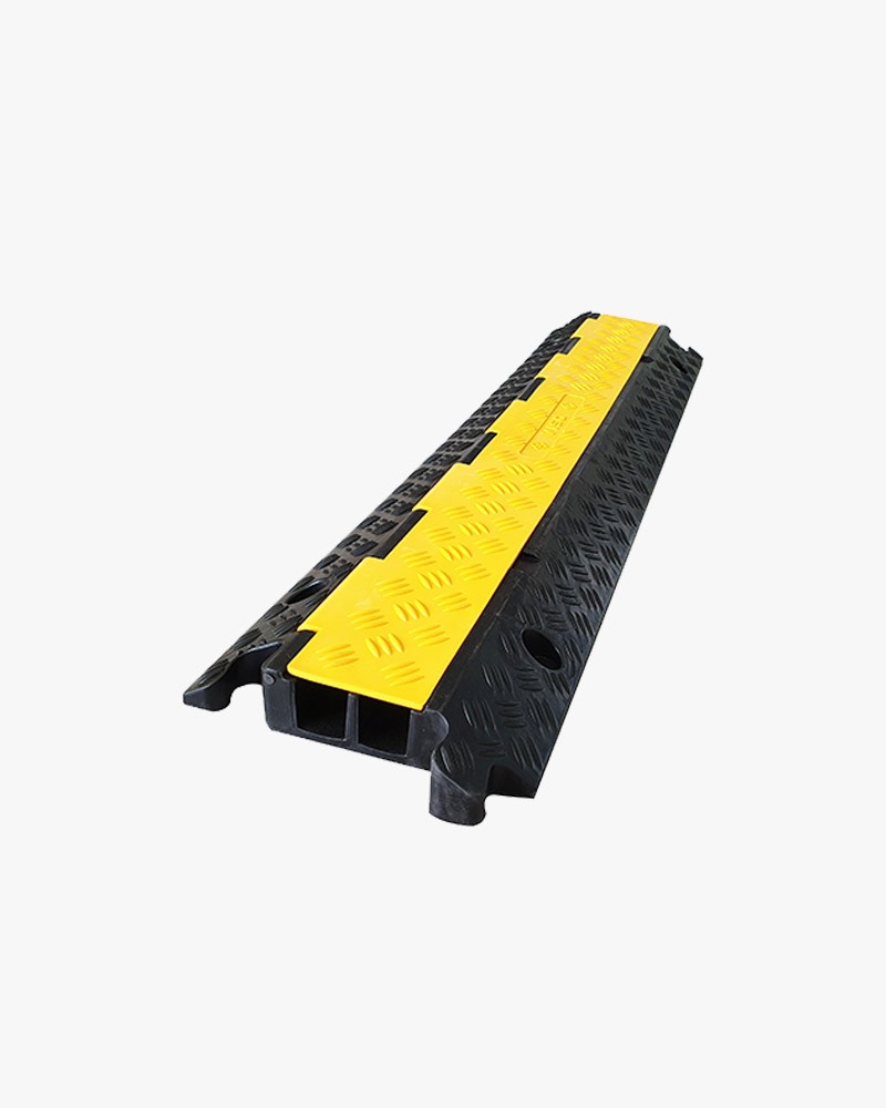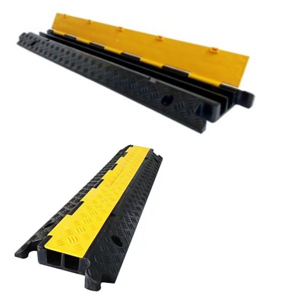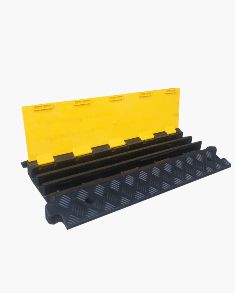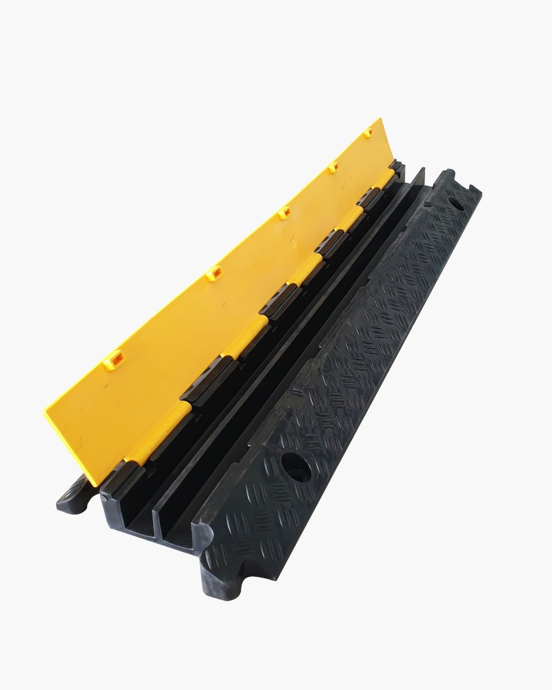 Passe câble en caoutchouc et polypropylène avec chargement par le dessus.Facile à manipuler.Idéal pour des installations provisoires : lieux de concert, d’exposition, salons, entrepôts, usines.
