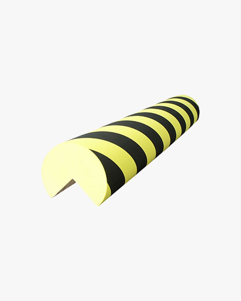 Mousse de protection d'angle rigide noir et jaune, adhésive et lavable.