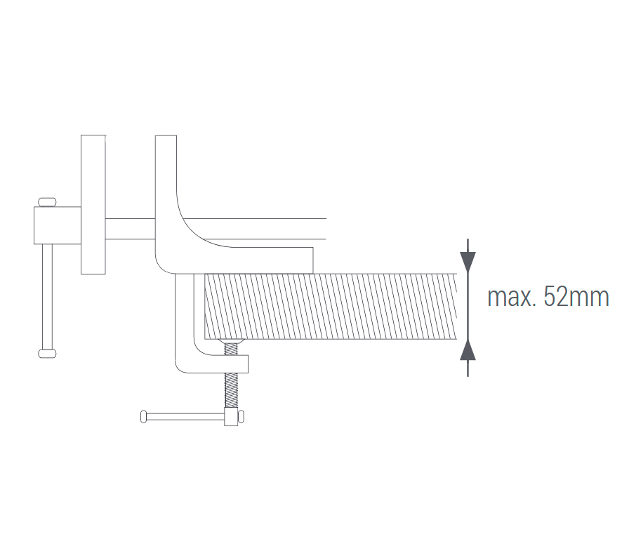 modèle transportable pour fixer sous table jusqu'à 52 mm d'épaisseur