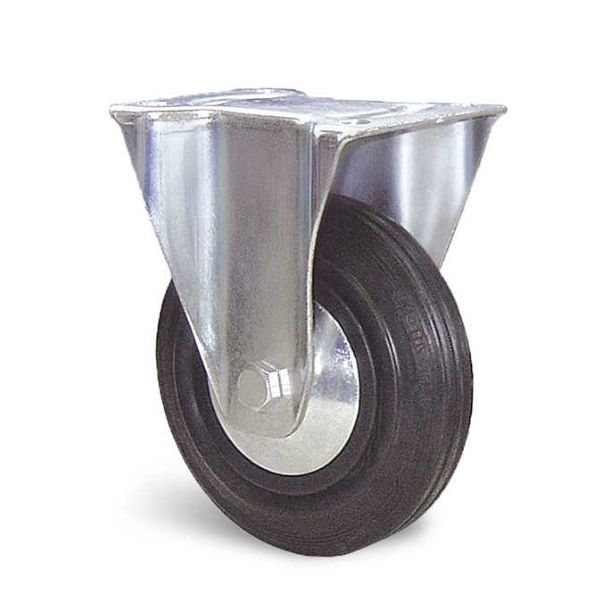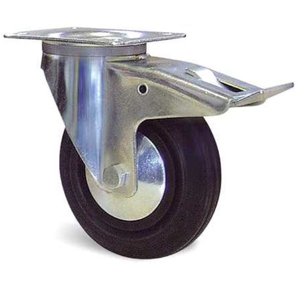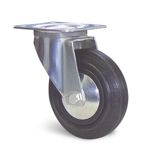 Roue : bandage plein en caoutchouc standard noir, corps de roue polyprolylène copolymère noir.