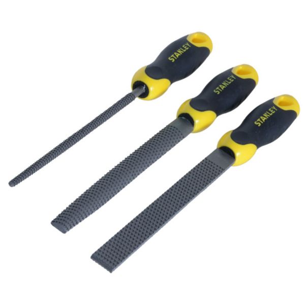 - Jeu de 3 râpes Bâtarde : Ronde 200mm, Demi-Ronde 200mm et Plate 200mm