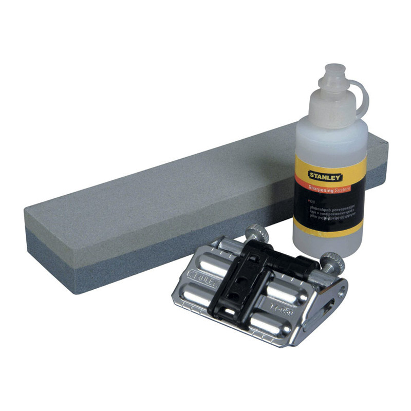 Kit d'affûtage comprenant : 1 guide d'affûtage, 1 pierre à huile, 1 flacon d'huile
