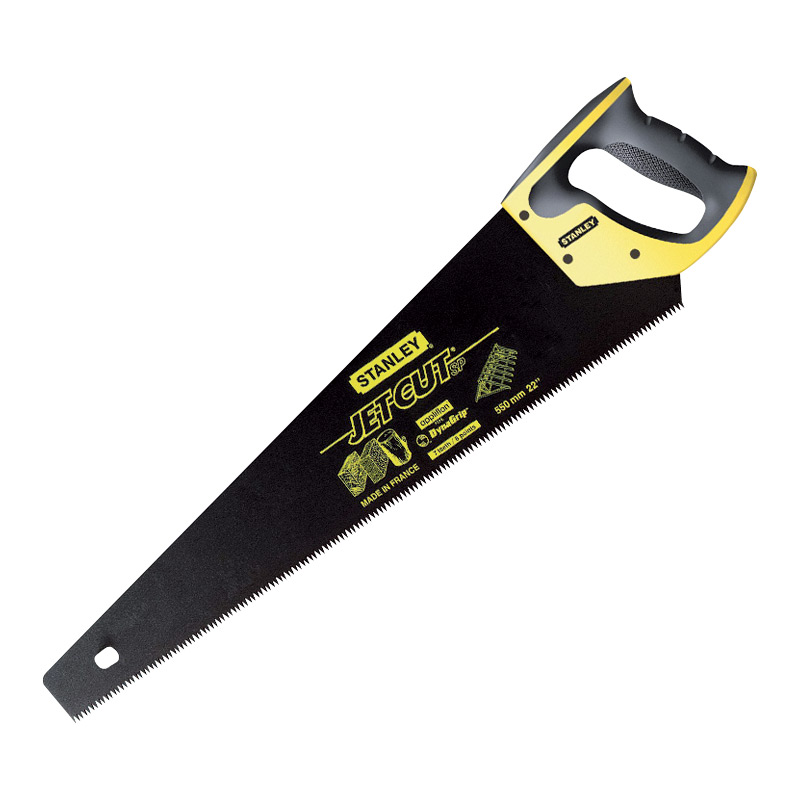 Scie égoïne Jet Cut spécial plâtre Appliflon. 7 dents au pouce avec encoches de dégagement pour sciage de carreaux et panneaux de plâtre. Lame avec revêtement anti rouille Appliflon. Poignée bi-matière vissée ergonomique pour le traçage à 45° et 90°. Lame acier suédois épaisseur 0,85 mm. Nouvelle denture de forme isocèle très effilée, affûtée par rectification. 3ème arrête de coupe au sommet de chaque dent.