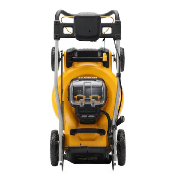 Fonctionne avec deux batteries DEWALT XR 18VPerformante : équipé d’un moteur Brushless, avec une largeur de coupe de 48 cm5 hauteurs de coupe ajustables par levier centralisé (25, 38, 57, 74 et 86mm)Tableau de bord avec indication sur l’état de charge de chacune des batteriesRoues en caoutchouc résistantes compactes et verrouillables pour le transport et le stockage facileFonction mulching & collecte de l’herbe dans le bacSac de ramassage en tiss [...]