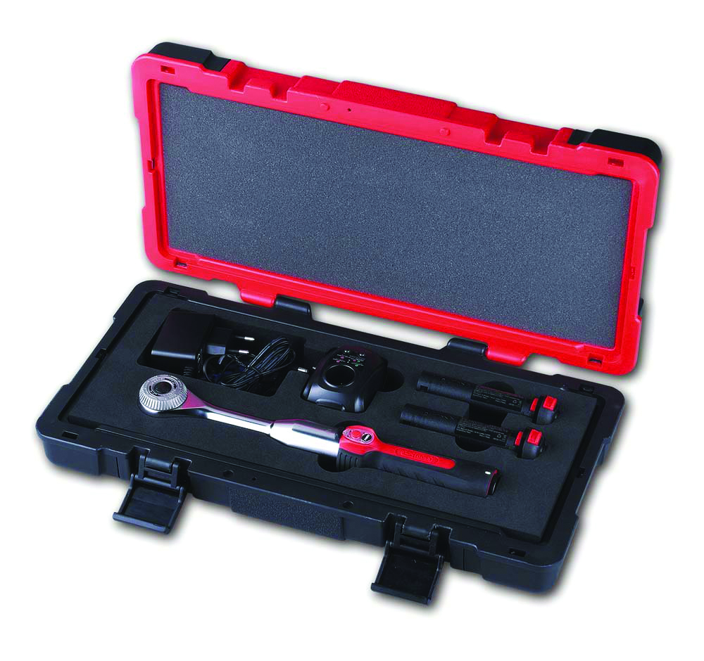 Carré d'entraînement avec bille de verrouillage selon DIN 3120 / ISO 1174 système d'éjection des douilles commutateur de verrouillage 72 dents couple : 1 Nm (énergisé) - 610 Nm (manuel) alimentation : Li-ion 3,6 V / 2000 mAh temps de charge : 45 minutes autonomie : 100 cycles( 1 cycle = 2 sec (serrage) à 5 sec (vissage)) vitesse de rotation à vide : 200 tr/min température d'utilisation : -20° à +60° C vibrations : 1,263 m/s² poids : 765 g livré en coffret bi-matière avec coins renforcés avec 2 batteries et une station de charge avec indicateurs LEDs.