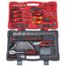 composition : 12 douilles 1/4" : 4 à 13 mm, 1 douille porte-embout, 2 rallonges 1/4" 50-100 mm, 1 tournevis porte douilles 1/4", 1 cliquet 1/4", 18 douilles 1/2" : 14 à 34 mm, 1 rallonge 1/2" : 125 mm, 1 cliquet 1/2", 1 pince coupante 180 mm, 1 pince multi