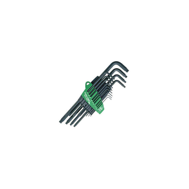 Jeu de 13 clés coudées Torx, surface traitée au phosphate de manganèse.