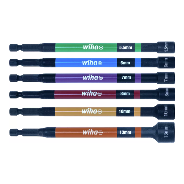 Les clés à douille disposent d’un embout magnétique.La surface colorée permet d’identifier rapidement la clé à douille requise.Peuvent être utilisées avec des machines à un couple maximal de 79 NmFabriquées en acier au chrome-molybdène.