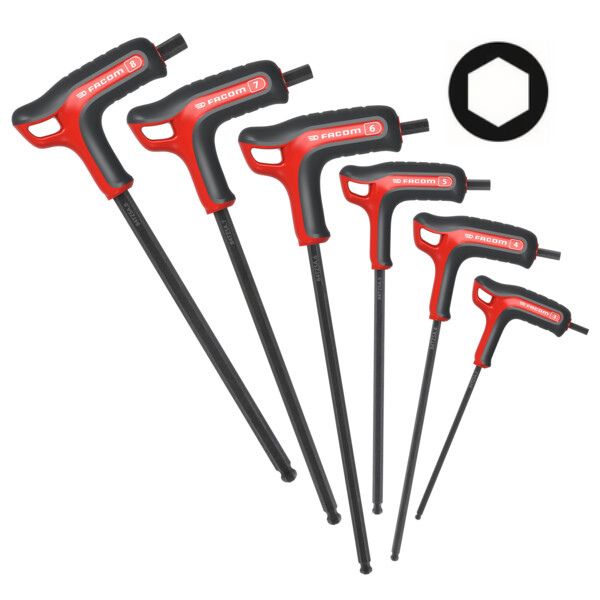 CLE MALE POIGNEE EN ''T'' 6 PANS TETE SPHERIQUE (JEU DE 6)