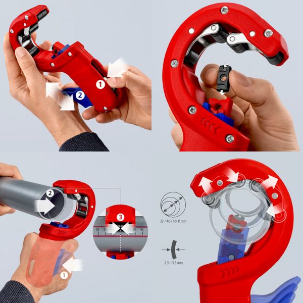 coupe et chanfreine facilement et directement les tubes en plastique de 32/40/50 mm en une seule étape