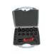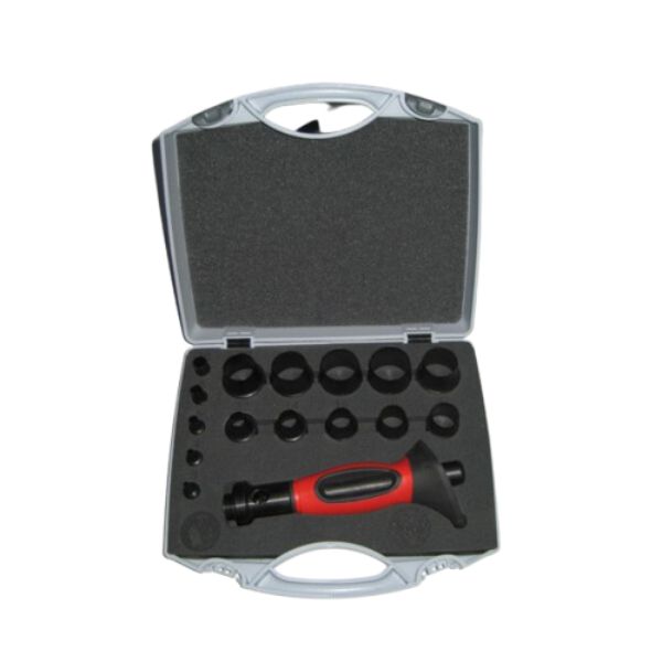 Découpe-joints en acier carbonepoignée bi-matière brevetéepermet de faire des joints et rondelles dans différents matériaux (mousse, carton, cuir, caoutchouc, fibre, plastique, plomb,...)composition : Ø3-4-6-8-10-12-14-16-18-20-22-24-26-28-30mmlivré en coffret.