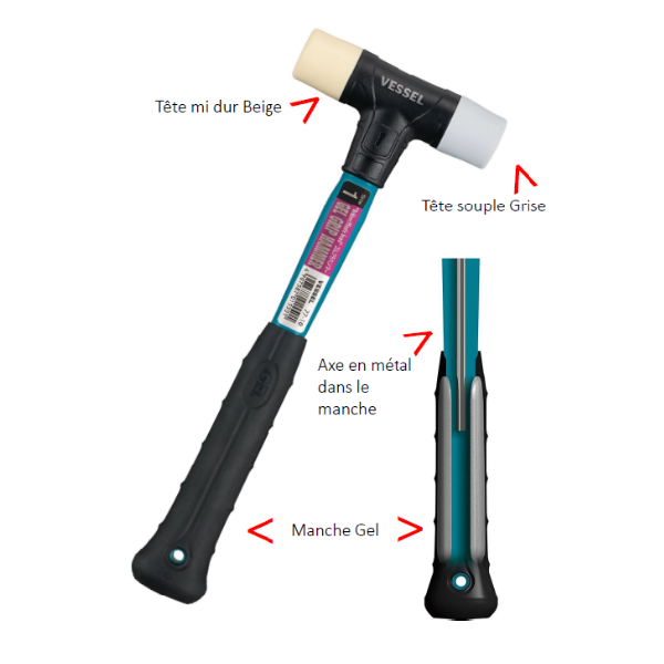 Massette à tête en plastique mi-dur et en caoutchouc souple.Manche spécial antidérapant en résine élastomère avec gel à l'intérieur pour absorber les chocs sur la paume et réduire la tension du poignet pendant l'utilisationExcellent équilibre entre les deux têtes, assurant une sensation ferme de martelageDoté d'un manche en métal int& [...]