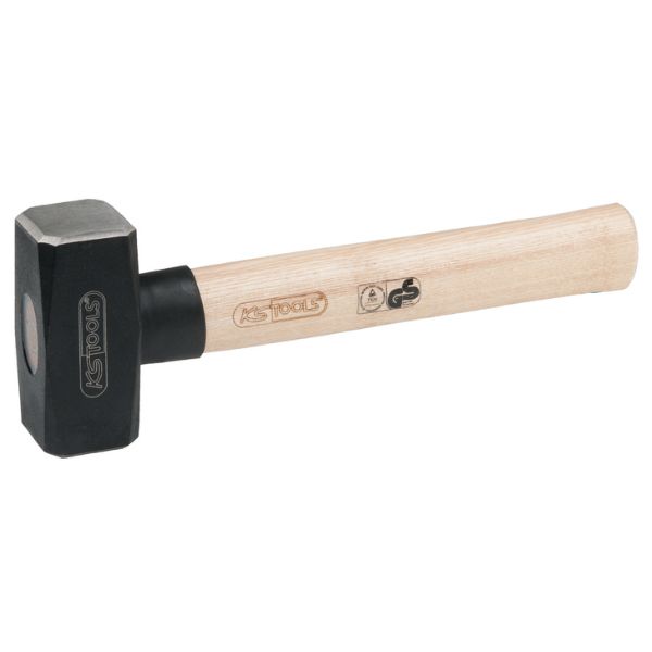 Manche frêne extrémités polies et angles arrondis emmanchement sécurité avec coin métal rond et résine.
