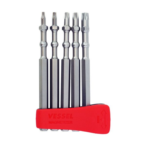 Embout à chocs Impact Ball haute durabilité (30x plus résistant) fabriqué en alliage VoHA VESSEL haute durabilité 62HRCconception avec double zone de torsion et bille d absorption des chocs assurant plus de longévité de l'embout et moins de destruction de la visidéal pour les visseuses à chocs et à puissante motorisationfourni en étui magnétiseur en plastique avec inserts de rangement des embouts permettant de magnétiser et démagnétiser l'embout souhaitéétui magnétiseur de 5 embouts 90 mm.